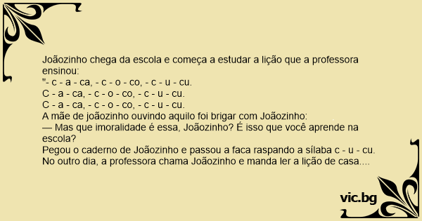 No outro dia, a professora chama Joãozinho e manda ler a lição de casa.