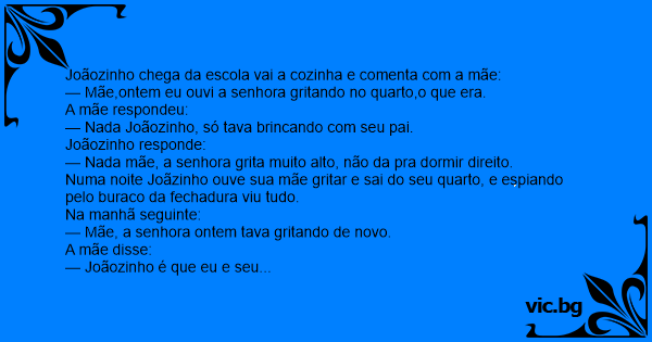 Numa noite Joãzinho ouve sua mãe gritar e sai do seu quarto, e espiando pelo buraco da fechadura viu tudo.
