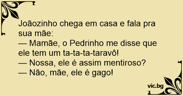 — Mamãe, o Pedrinho me disse que ele tem um ta-ta-ta-taravô!