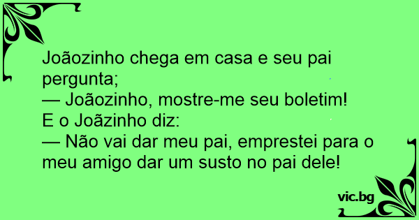 — Joãozinho, mostre-me seu boletim!