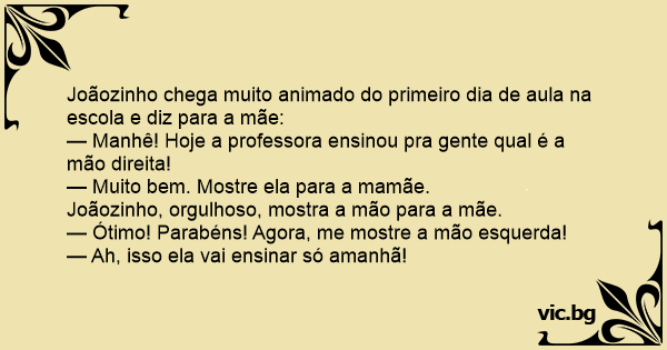 — Manhê! Hoje a professora ensinou pra gente qual é a mão direita!