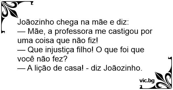 — Mãe, a professora me castigou por uma coisa que não fiz!