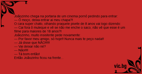 Joãozinho chega na portaria de um cinema pornô pedindo para entrar: