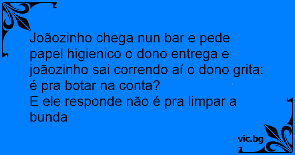 Joãozinho chega nun bar e pede papel higienico o dono entrega e joãozinho sai correndo aí o dono grita: é pra botar na conta?