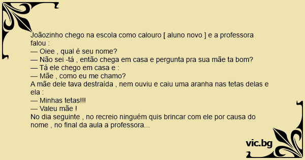 Joãozinho chego na escola como calouro [ aluno novo ] e a professora falou :