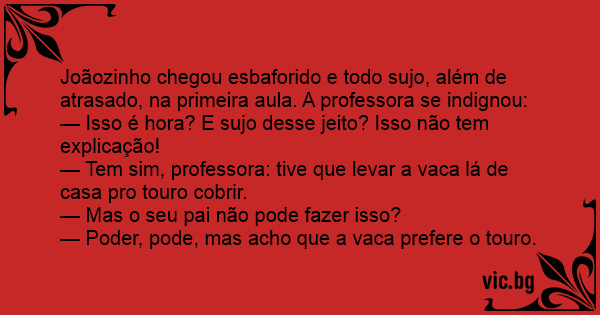 — Tem sim, professora: tive que levar a vаса lá de casa pro touro cobrir.