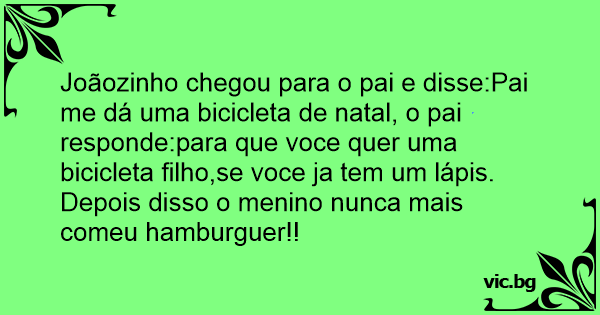 Joãozinho chegou para o pai e disse:Pai me dá uma bicicleta de natal, o pai responde:para que voce quer uma bicicleta filho,se voce ja tem um lápis.