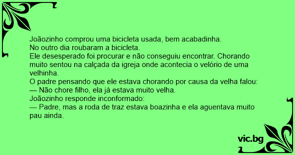 Joãozinho comprou uma bicicleta usada, bem acabadinha.