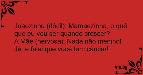 Joãozinho (dócil): Mamãezinha, o quê que eu vou ser quando crescer?