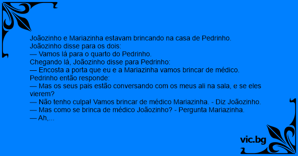 — Mas como se вrinса de médico Joãozinho? - Pergunta Mariazinha.