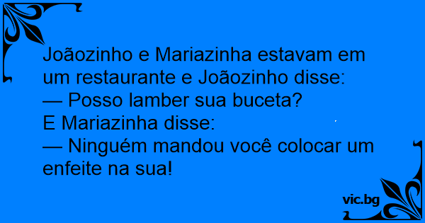 Joãozinho e Mariazinha estavam em um restaurante e Joãozinho disse: