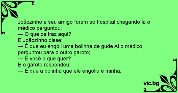 — É que eu engoli uma bolinha de gude Ai o médico perguntou para o outro garoto;