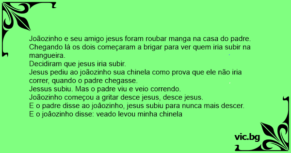 Joãozinho e seu amigo jesus foram roubar manga na casa do padre.