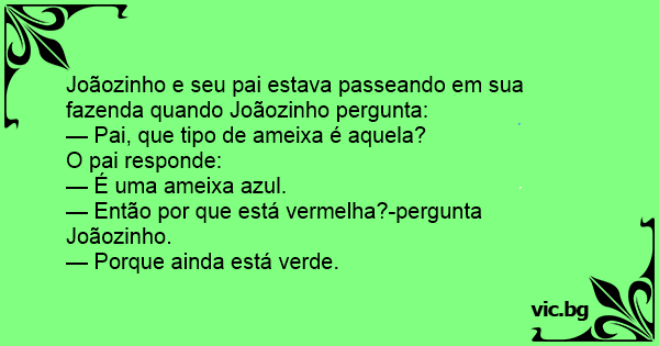 Joãozinho e seu pai estava passeando em sua fazenda quando Joãozinho pergunta: