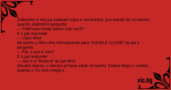 Joãozinho e seu pai estavam sujos e encardidos, precisando de um banho, quando Joãozinho pergunta: