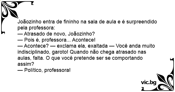 — Atrasado de novo, Joãozinho?