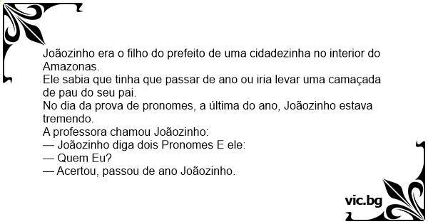 — Acertou, passou de ano Joãozinho.