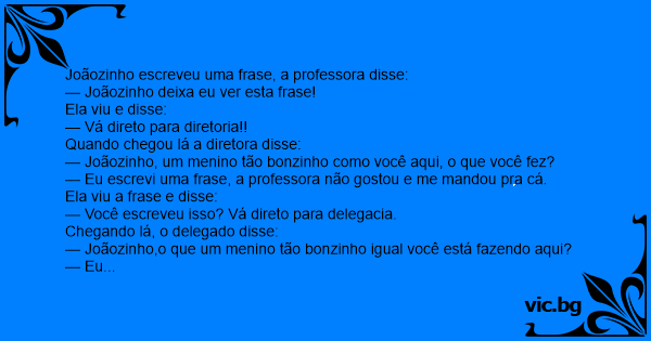 — Joãozinho deixa eu ver esta frase!