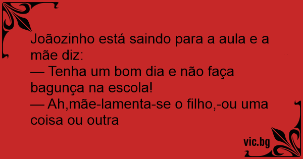 Joãozinho está saindo para a aula e a mãe diz: