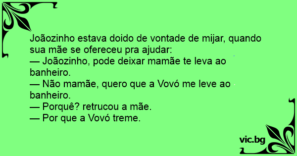 — Joãozinho, pode deixar mamãe te leva ao banheiro.