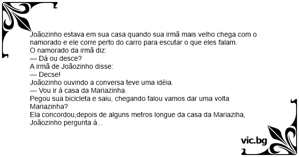 Ela concordou,depois de alguns metros longue da casa da Mariaziha, Joãozinho pergunta á ela.