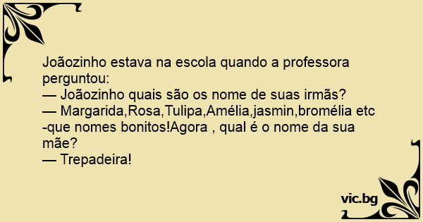 — Joãozinho quais são os nome de suas irmãs?