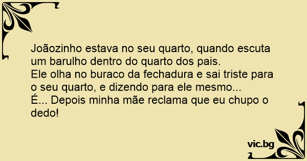 Joãozinho estava no seu quarto, quando escuta um barulho dentro do quarto dos pais.
