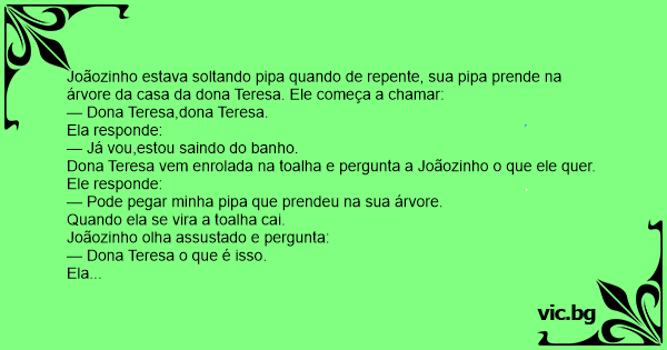 Joãozinho estava soltando рiра quando de repente, sua рiра prende na árvore da casa da dona Teresa. Ele começa a chamar: