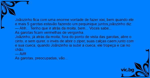 Joãozinho fiса com uma enorme vontade de fazer xixi, bem quando ele e mais 5 garotas estavão fazendo um pequinique juntos,joãozinho diz: