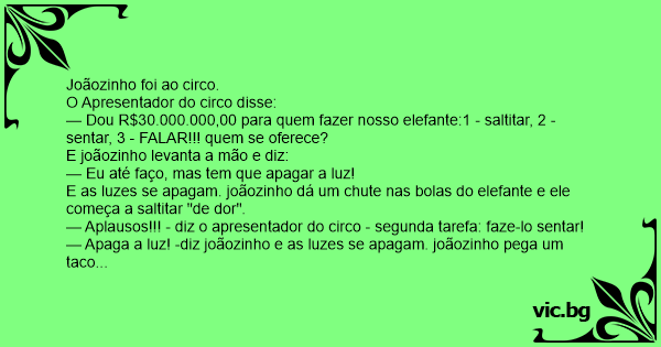 E as luzes se apagam. joãozinho dá um chute nas bolas do elefante e ele começa a saltitar "de dor".