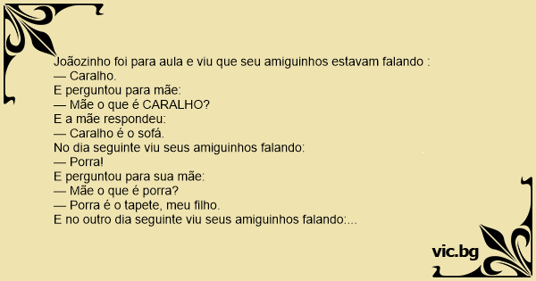 — Entra demônio, limpa o pé na роrrа, senta no саrаlhо, que a mãe tá lavando a вuсета.