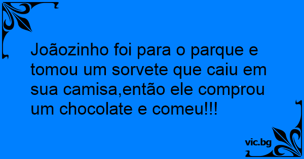 Joãozinho foi para o parque e tomou um sorvete que caiu em sua camisa,então ele comprou um chocolate e comeu!!!