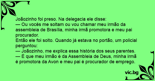 Joãozinho foi preso. Na delegacia ele disse: