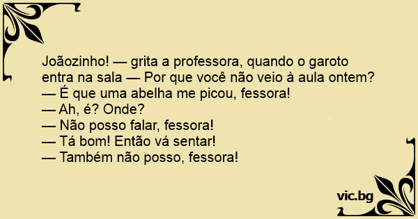 — É que uma abelha me picou, fessora!