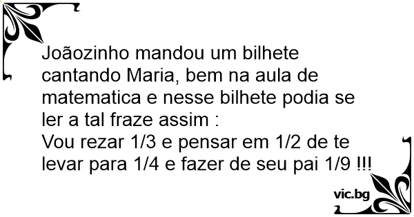 Joãozinho mandou um bilhete cantando Maria, bem na aula de matematica e nesse bilhete podia se ler a tal fraze assim :