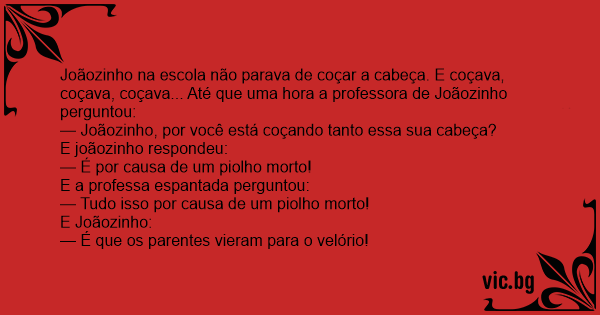 Joãozinho na escola não parava de coçar a cabeça. E coçava, coçava, coçava... Até que uma hоrа a professora de Joãozinho perguntou: