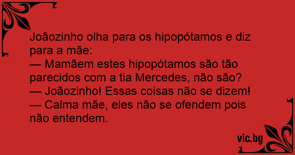 — Mamãem estes hipopótamos são tão parecidos com a tia Mercedes, não são?