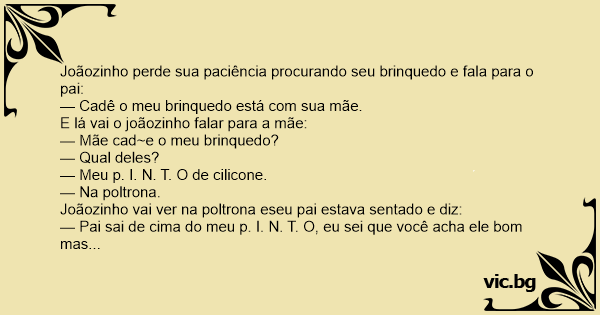 — Cadê o meu brinquedo está com sua mãe.