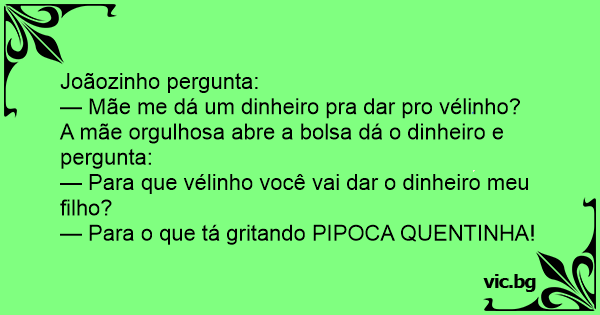 — Para que vélinho você vai dar o dinheiro meu filho?