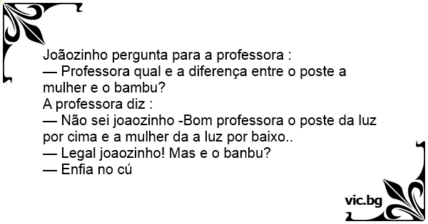 — Professora qual e a diferença entre o poste a mulher e o bambu?