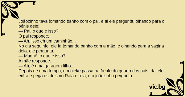 Joãozinho tava tomando banho com o pai, e ai ele pergunta, olhando para o pênis dele: