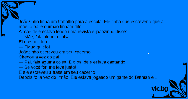 Joãozinho tinha um trabalho para a escola. Ele tinha que escrever o que a mãe, o pai e o irmão tinham dito.