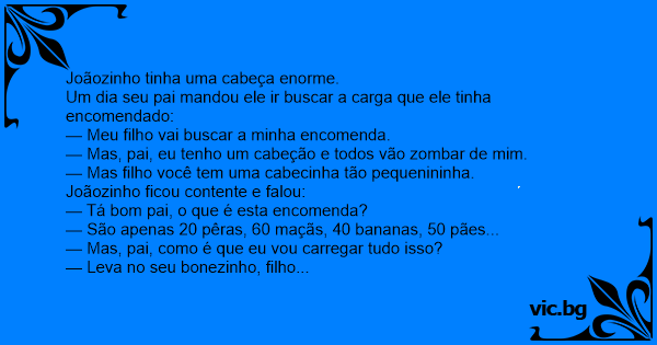 — Mas filho você tem uma cabecinha tão pequenininha.