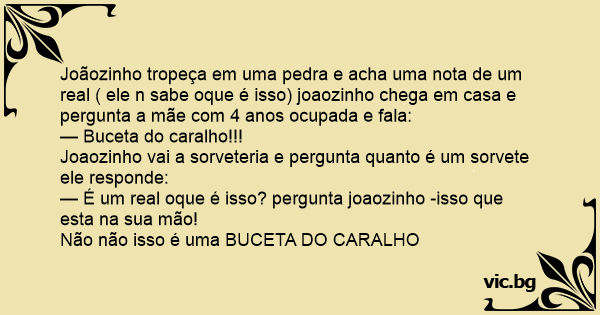 Joãozinho tropeça em uma pedra e acha uma nota de um real ( ele n sabe oque é isso) joaozinho chega em casa e pergunta a mãe com 4 anos ocupada e fala: