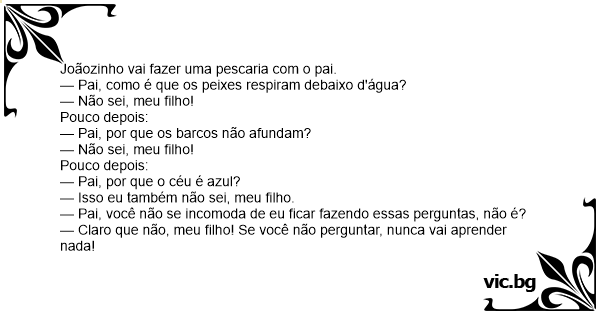 — Claro que não, meu filho! Se você não perguntar, nunca vai aprender nada!