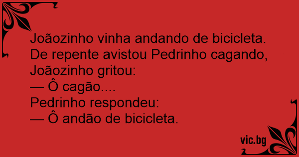 De repente avistou Pedrinho cagando, Joãozinho gritou: