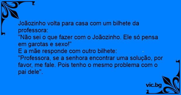 Joãozinho volta para casa com um bilhete da professora: