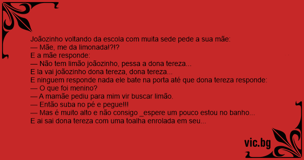 Joãozinho voltando da escola com muita sede pede a sua mãe: