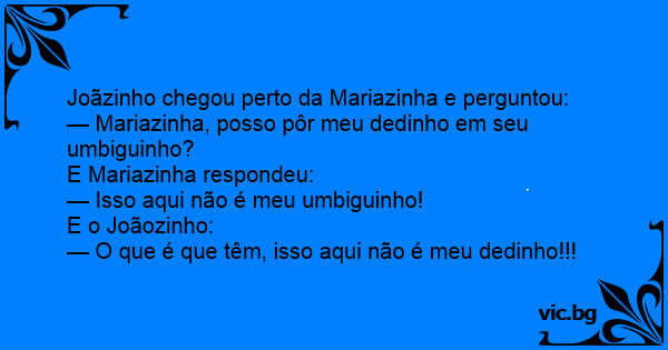 — Mariazinha, posso pôr meu dedinho em seu umbiguinho?