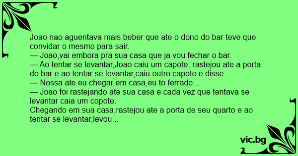 — Ao tentar se levantar,Joao caiu um capote, rastejou ate a porta do bar e ao tentar se levantar,caiu outro capote e disse: